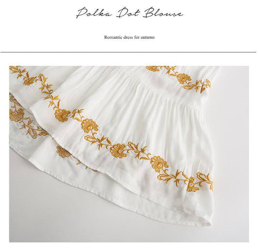 Woman Summer Dress V-neck Embroidered Loose Dress Embroidered Long Skirt